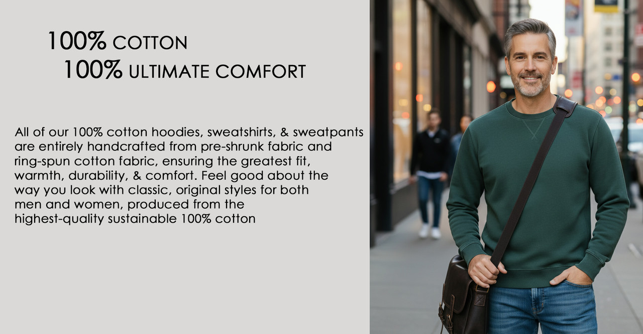 Just Sweatshirts was founded in 2001 and since then, “Ultimate comfort” has been our ultimate mission and we make it possible through offering an extensive line up of premium quality 100% cotton sweatshirts for men and women. We are a small family -run business and pride ourselves on delivering top class service to you, our valued customers. We understand exactly what it takes to combine the elements of style, quality, excellent value, and fast delivery.